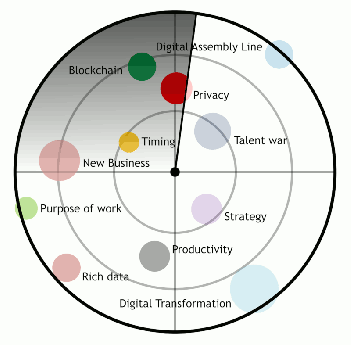 Een Community of Practice (COP) is een open-innovatie omgeving om een toekomstradar te ontwikkelen, kansen te pakken, problemen op te lossen en prototypes te bouwen. Samen ontdekken, leren, begrijpen, onderzoeken, experimenteren, ontwerpen en ontwikkelen met de focus op de vragen: Hoe wordt ik als professional en organisatie toekomstbestendig? of concreet: hoe organiseer ik vraag en aanbod van (interacties en transacties) met zo min mogelijk frictie door gebruik te maken van datagedreven organiseren en AI als onderdeel van de digitale lopende band? Samen ontwikkel je bijvoorbeeld een platform met betrouwbare goed afgeschermde data om AI te trainen en gebruiken. Door bestaande systemen uit te faseren en nu beginnen met innoveren (zogenaamde double track innovation strategy) combineer je compliance zijn met futureproof worden. En dit alles binnen een bepaald domein (Finance, HR, ICT, Innovation, Legal, Logistics, Management, Marketing, Overheid, Tax etc.) of thema’s zoals: